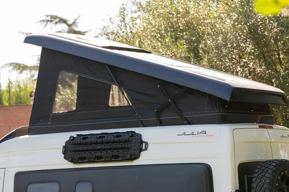 En la búsqueda constante de eficiencia técnica, también se ofrece la opción de fabricar techos elevables y expansiones laterales en fibra de carbono.