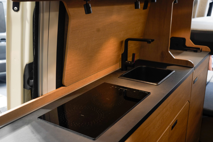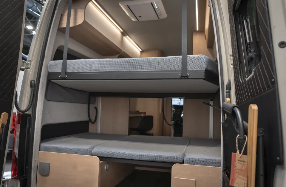 Incorporamos extensiones laterales que aumentan la anchura útil del vehículo respecto a la carrocería original. Estas expansiones permiten ganar varios centímetros clave de amplitud interior y, en las versiones cortas, hacen posible dormir en posición transversal, mejorando notablemente la habitabilidad sin comprometer la estructura.