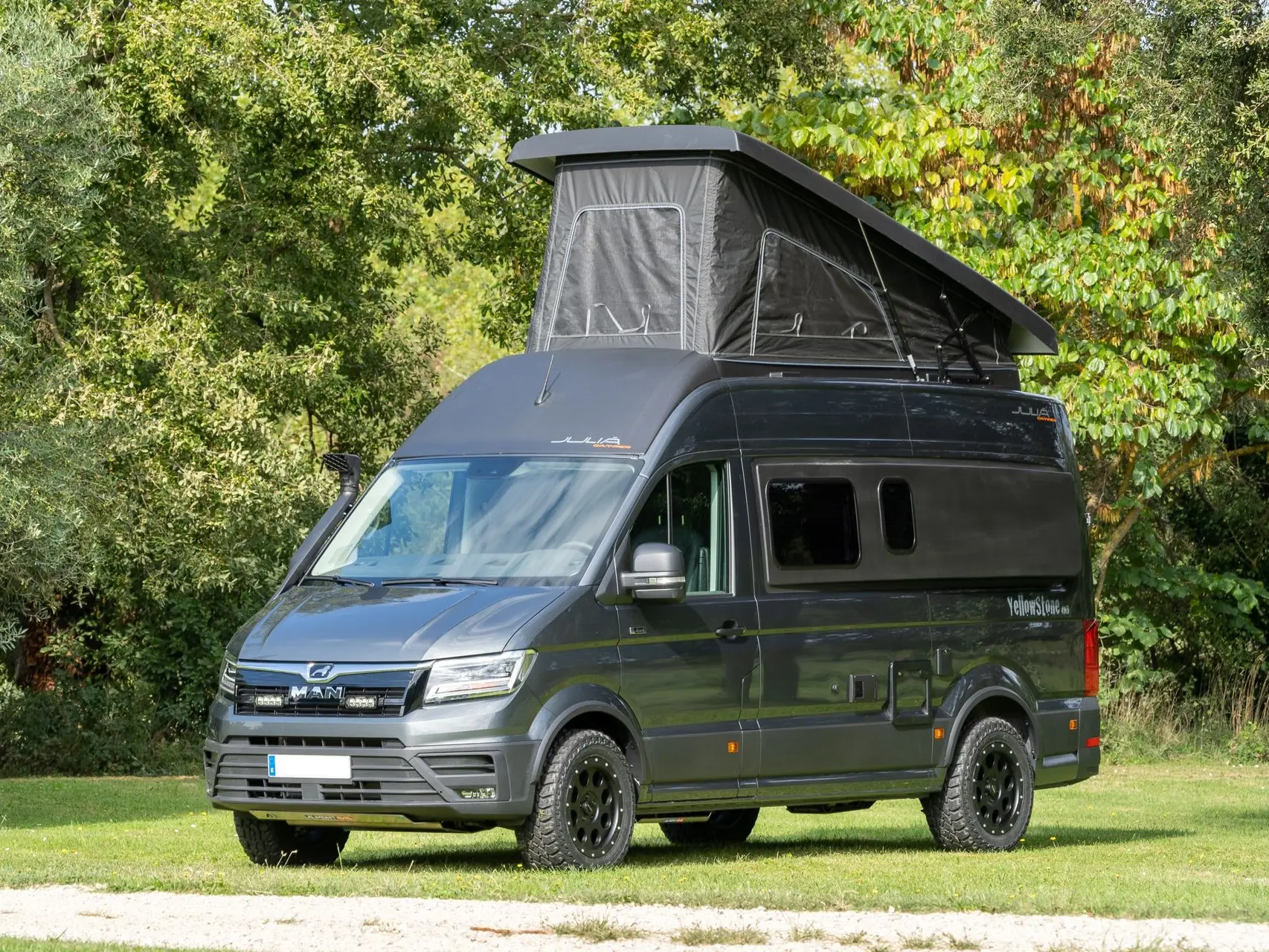 El modelo Yellowstone se construye sobre chasis MAN TGE 4x4 / Volkswagen Crafter 4Motion, una plataforma robusta, moderna y optimizada para aplicaciones camper y off-road exigentes.